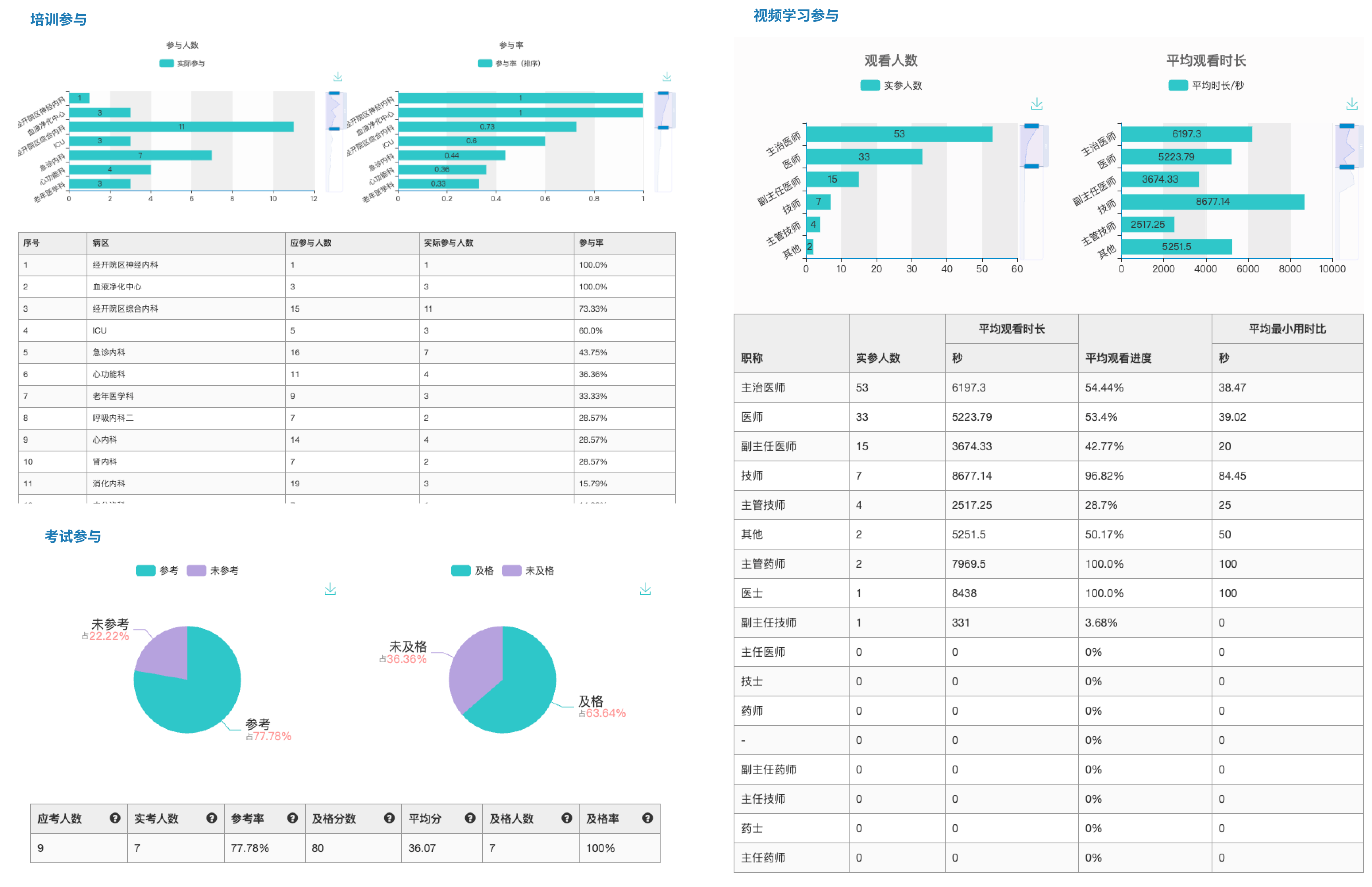 按科室汇总培训计划、参与率、达标率等数据,形成科室教学档案
